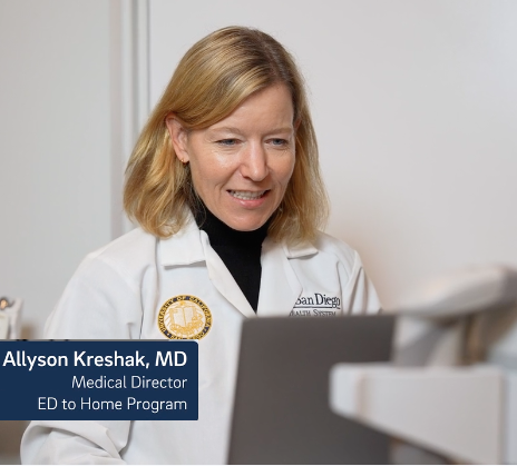 Co-designed with patients and staff, UC San Diego Health launched the Emergency Department–Transition of Care program in 2022. It provides eligible Medicare patients the option to receive hospital-level care at home, supported by virtual visits, in-home visits and diagnostics, and remote monitoring.